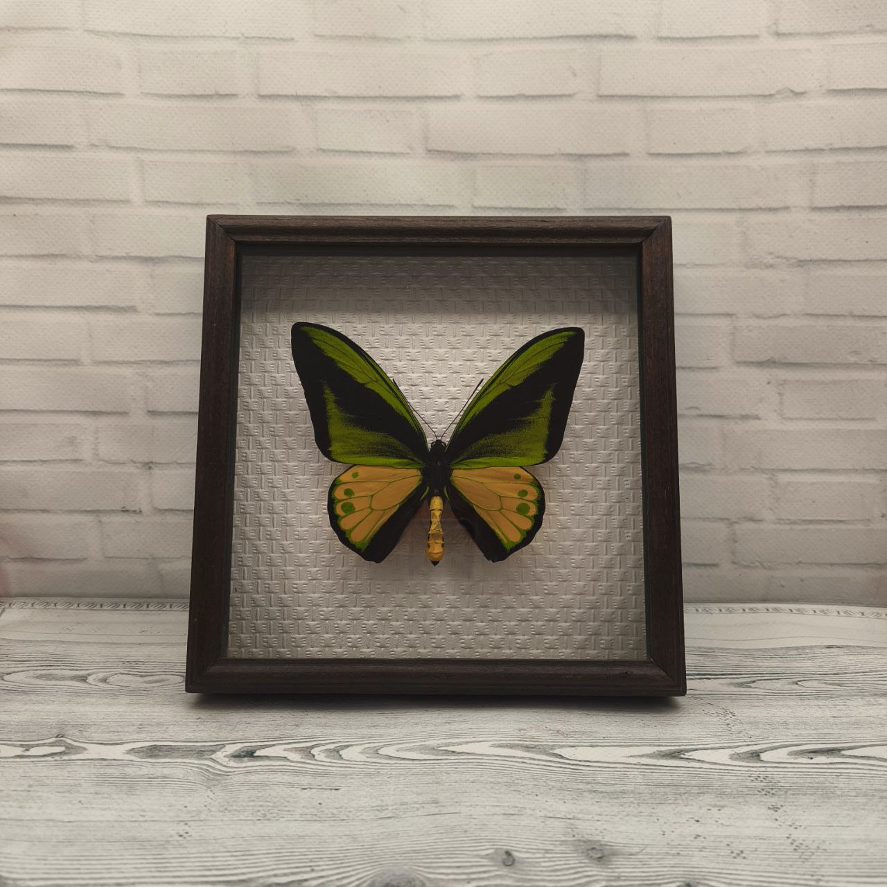 Справжній метелик в рамці з натурального дерева стане чудовим подарунком, як для колекціонерів, так і для шанувальників усього прекрасного та екзотичного на довгі роки. Також такими сувенірами можна прикрасити Вашу оселю.