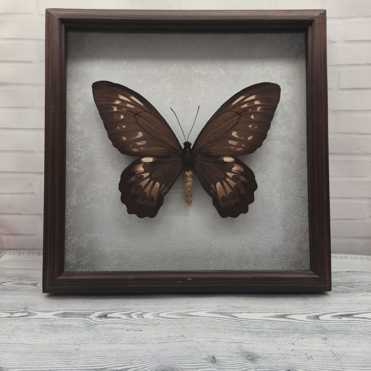 Справжній метелик в рамці з натурального дерева стане чудовим подарунком, як для колекціонерів, так і для шанувальників усього прекрасного та екзотичного на довгі роки. Також такими сувенірами можна прикрасити Вашу оселю.