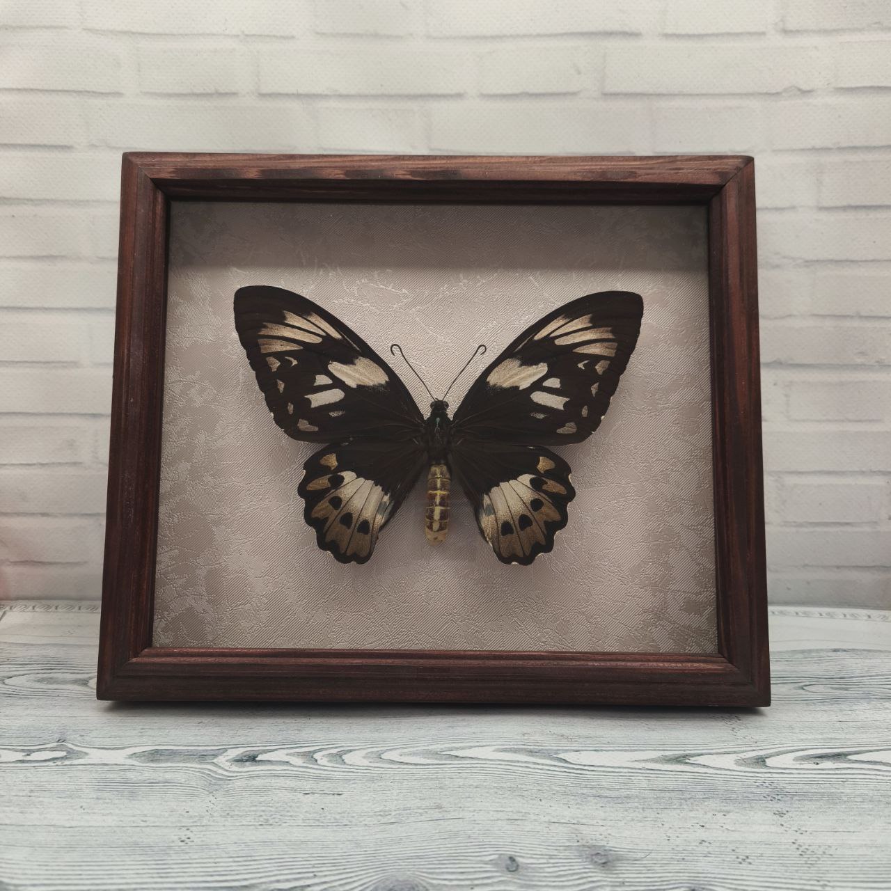 Справжній метелик в рамці з натурального дерева стане чудовим подарунком, як для колекціонерів, так і для шанувальників усього прекрасного та екзотичного на довгі роки. Також такими сувенірами можна прикрасити Вашу оселю.