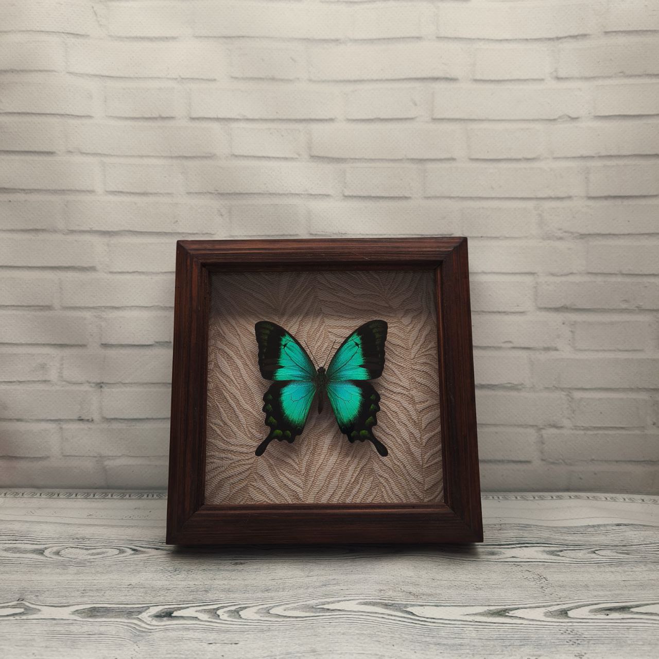 Справжній метелик в рамці з натурального дерева стане чудовим подарунком, як для колекціонерів, так і для шанувальників усього прекрасного та екзотичного на довгі роки. Також такими сувенірами можна прикрасити Вашу оселю.